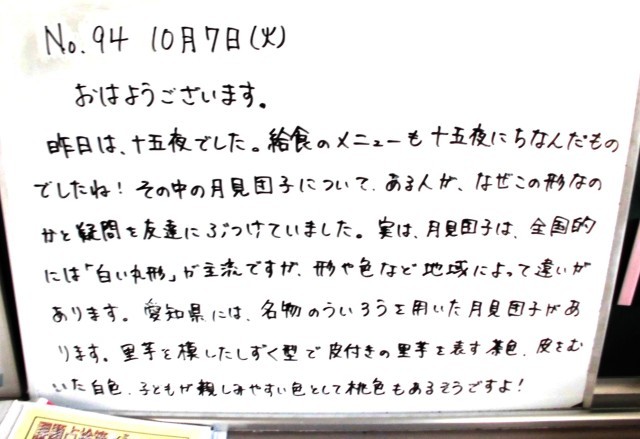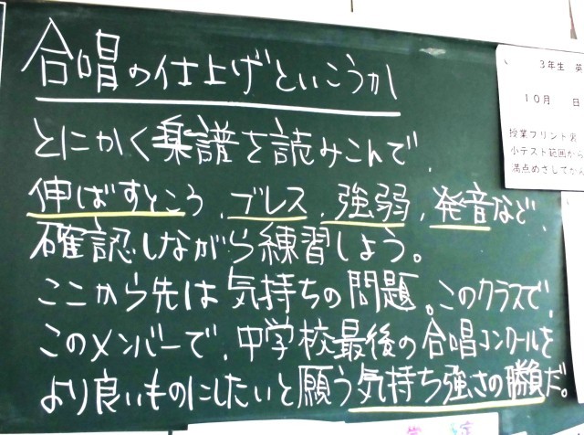 昨夜は、中秋の名月を見ることができたでしょうか。朝晩、めっきり涼しくなりました。季節の変化を感じます。その分、3年生のみなさんも成長していると思います。成長のチャンスをしっかりと意識していろいろなことに取り組んでいきましょう。