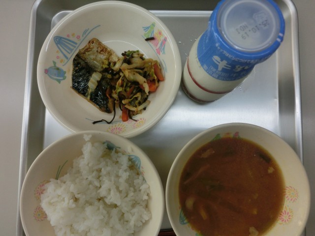 今日は「まごわやさしい」献立です。「まごわやさしい」は、「豆、ごま、わかめなどの海そう、野菜、魚、しいたけなどのきのこ類、いも類」の頭文字を表しています。これらの食材は普段の食事で不足しがちなため、意識して食べるようにしましょう。