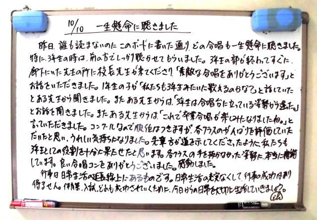 10月10日(金)3年生 先生からのメッセージ