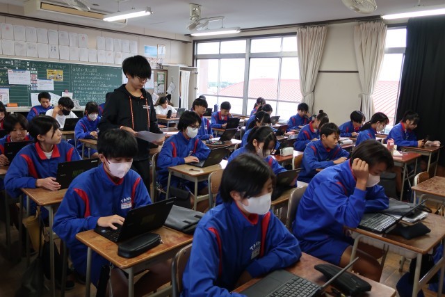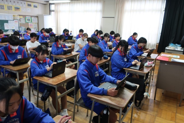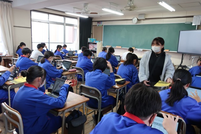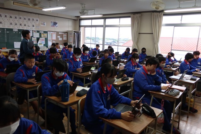 2年生は、丹中タイムにクロムブックを使って社会の小テストを行っていました。デジタル機器の有効活用を意識しながらの取り組みを進めています。子ども達も積極的に活用しています。