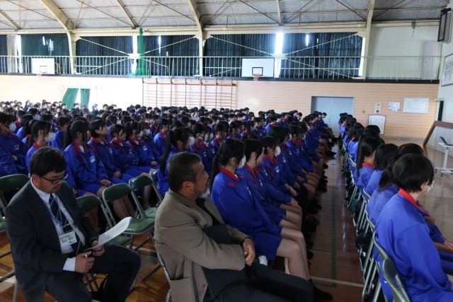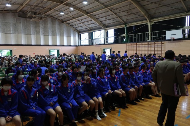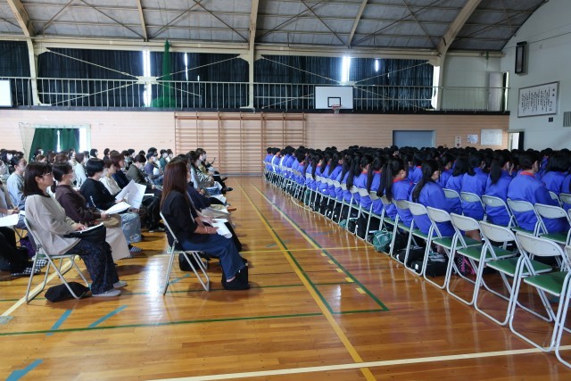 本日の午後、屋内運動場にて進路説明会を行いました。保護者の皆様にはご多用の中、多数ご参加いただき、誠にありがとうございました。