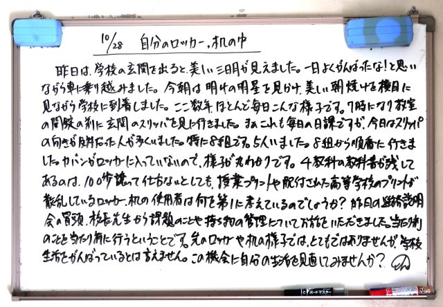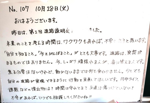 10月28日(火)3年生 先生からのメッセージ