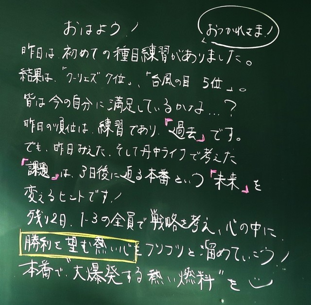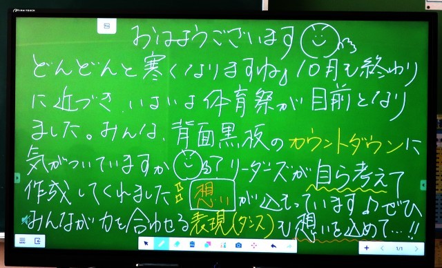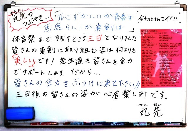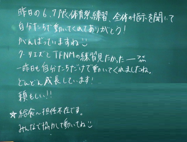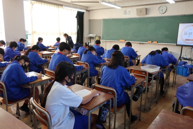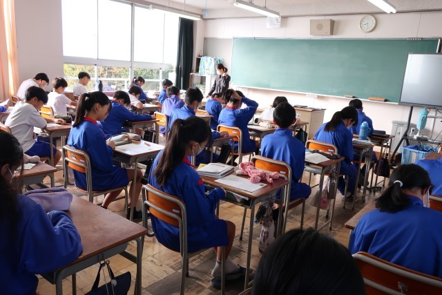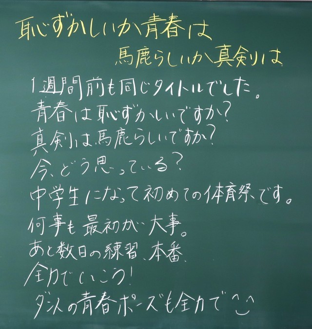 朝の丹中タイムには、国語の小テストを行っていました。体育祭での力強い行動と教室での落ち着いた行動、メリハリをつけて生活できる力が備わってきていることを感じます。その時々に必要なことを一生懸命に行う姿は「カッコイイ」ですよ。