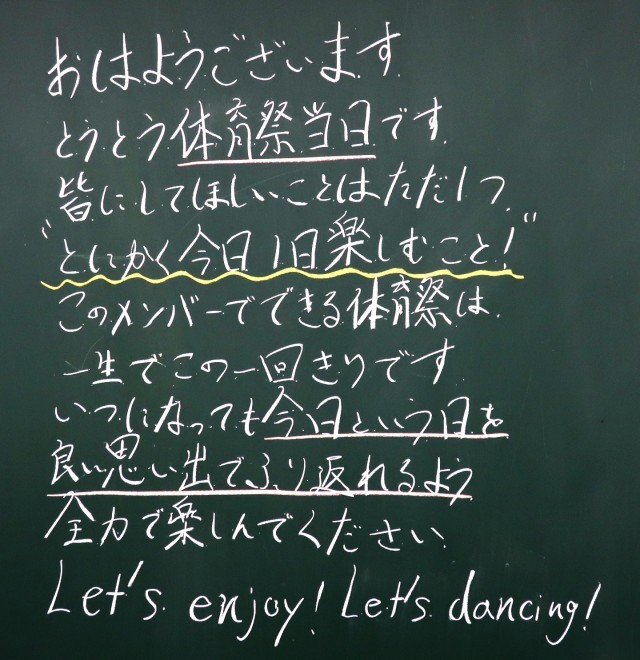 先生方からのメッセージです。みんなで素敵な1日を創り上げましょう!