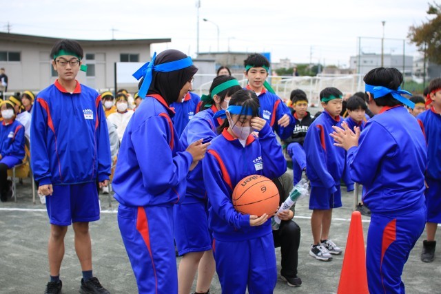 10・11・12組の生徒は1年生の「超過麗!灼熱のタンチュウクーリエズ」に参加しました。どの生徒もボールを次につなごうと、一生懸命に取り組む姿がありました。一部の生徒は、交流の学級と一緒に競技に参加したり、ダンスを踊ったりするなど、がんばる姿がありました。また、会場内に掲げられた、貼り絵による看板は、10・11・12組の生徒が一つ一つ丁寧に作ったものです。ぜひ、ご家庭で体育祭の話題をしてもらえるとありがたいです。よろしくお願いします。