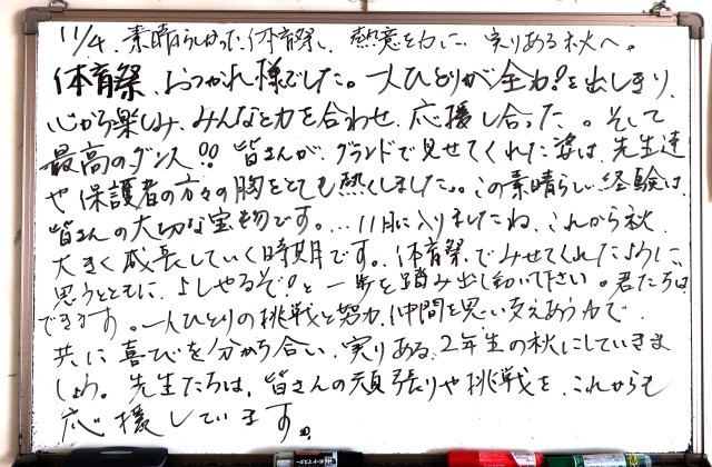 11月4日(火)2年生 先生からのメッセージ