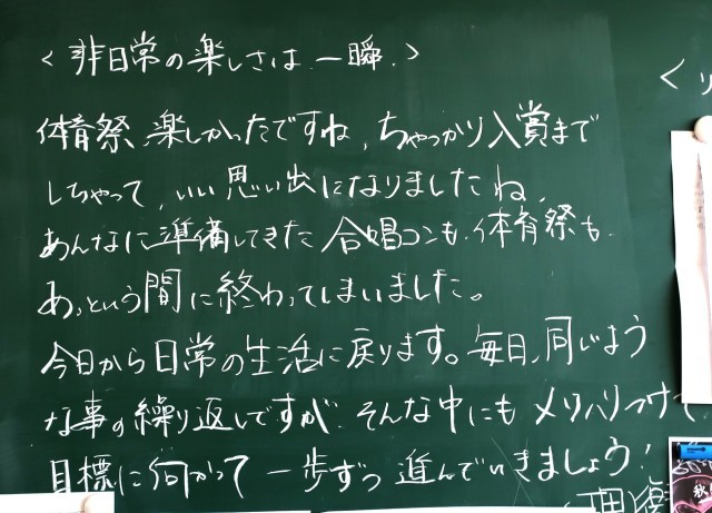 3年生の皆さんも、大きな行事を成功させた充実感をかみしめながら、次の目標に向けて、よいスタートが切れているようです。ひとつひとつ地道に取り組む姿勢を大切にしていきましょう。