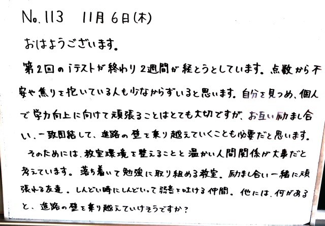 11月6日(木)3年生 先生からのメッセージ