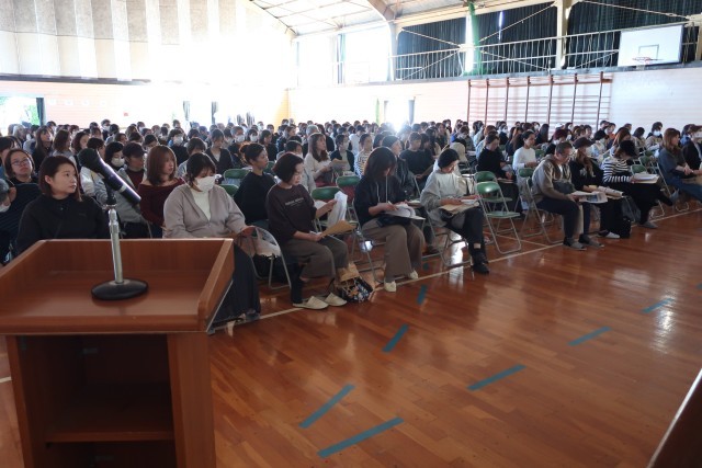 本日の午後、丹陽中学校の屋内運動場にて、来春、丹陽中学校に入学するご予定の保護者の方にお集まりいただき、新入学説明会を行いました。限られた時間の中での説明だったため、分かりにくいところも多かったと思います。ご心配なことがあれば、遠慮せずにお問い合わせください。お子様のご入学を楽しみにお待ちしております。