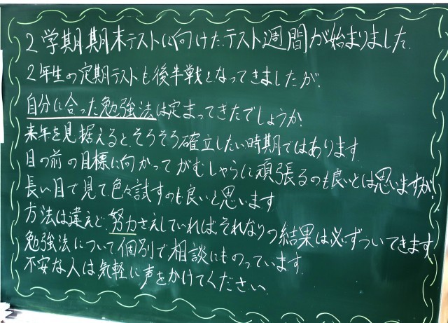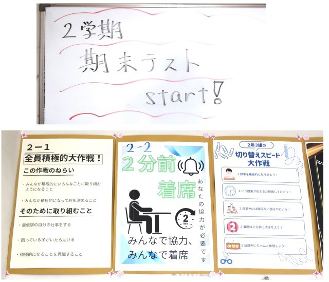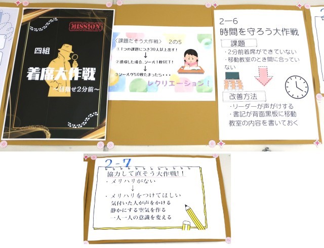 2年生では、学級のリーダーが中心となり、生活の向上に向けた取り組みがスタートしました。時間を守ったり、一人一人が自分の役割に責任をもって行動したりするなど、クラスの仲間と協力しながら取り組んでいきます。よりよい生活を目指してがんばりましょう。