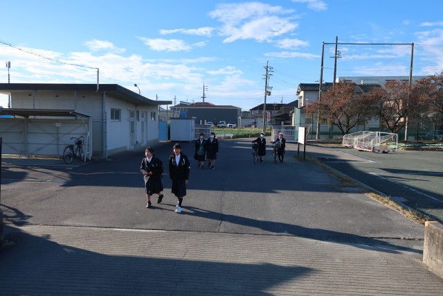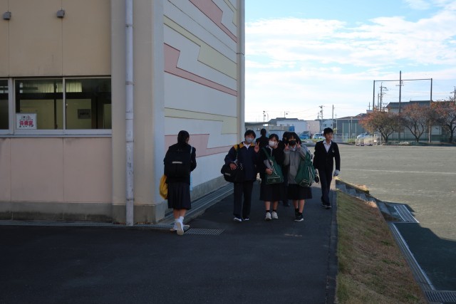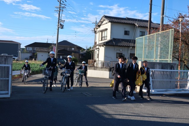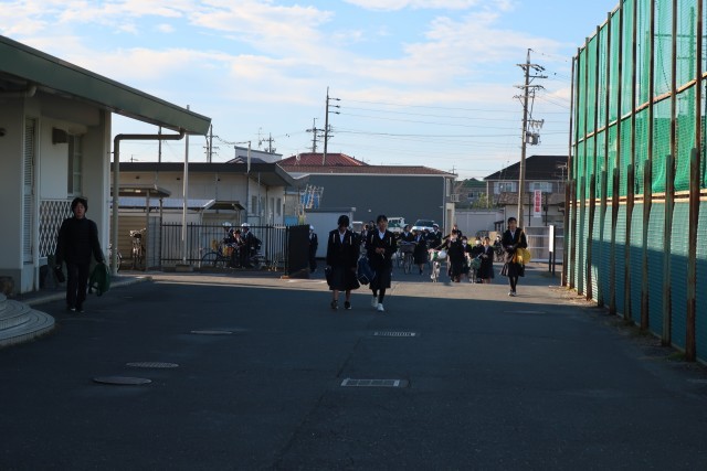 気持ちのいい青空が広がる朝でした。気温が低くなってきているので、徐々に防寒具をつけて登校してくる子どもの数が増えてきたようです。テスト週間のため、体調管理には十分注意して過ごしましょう。