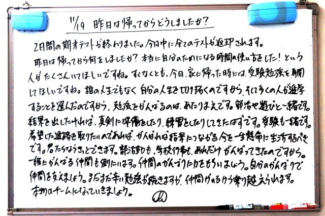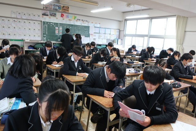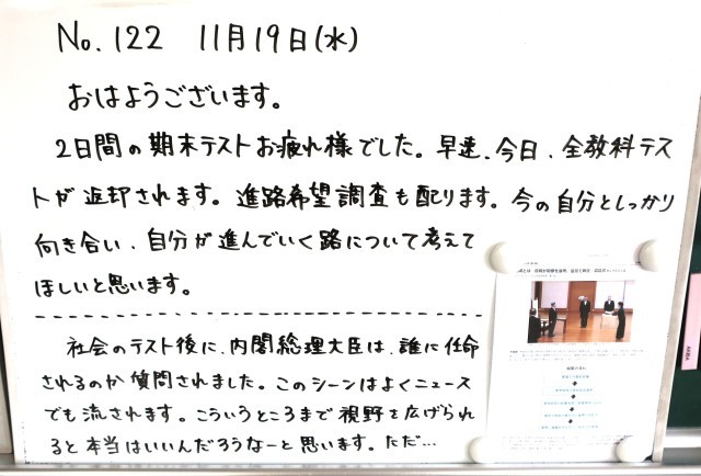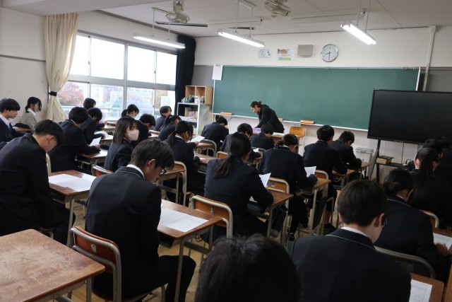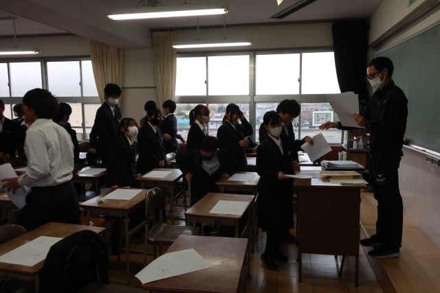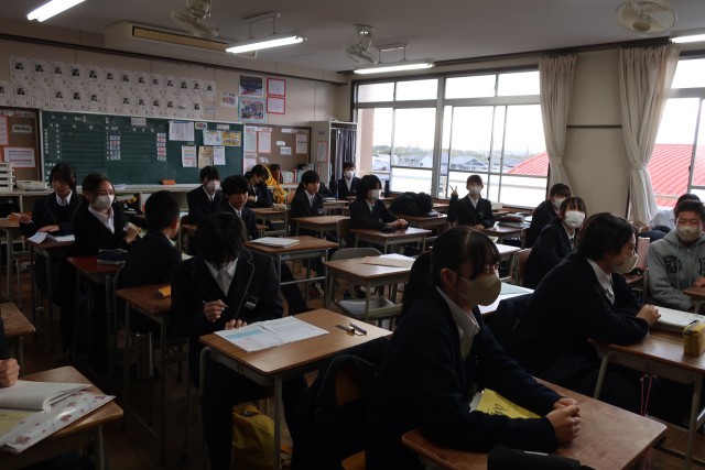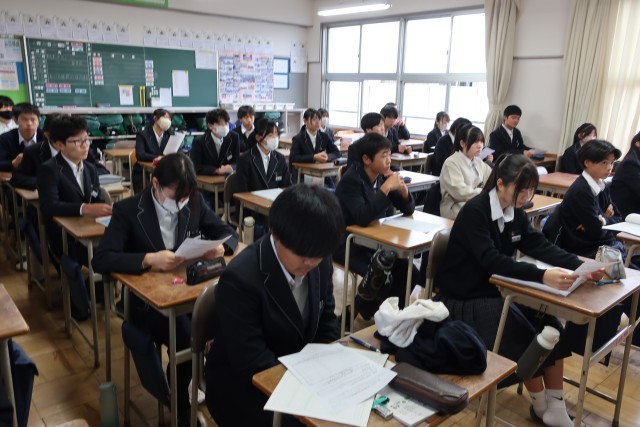 3年生のみなさんは、テストが終わると受験に向けての準備をしなくてはなりません。担任の先生から、進路希望調査の記入の仕方など、しっかりと話を聞いている姿がとても立派です。自分の進むべき道をしっかりと考えていきましょう。