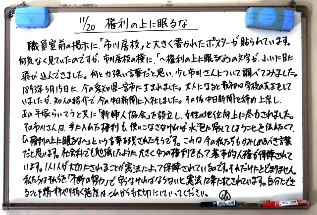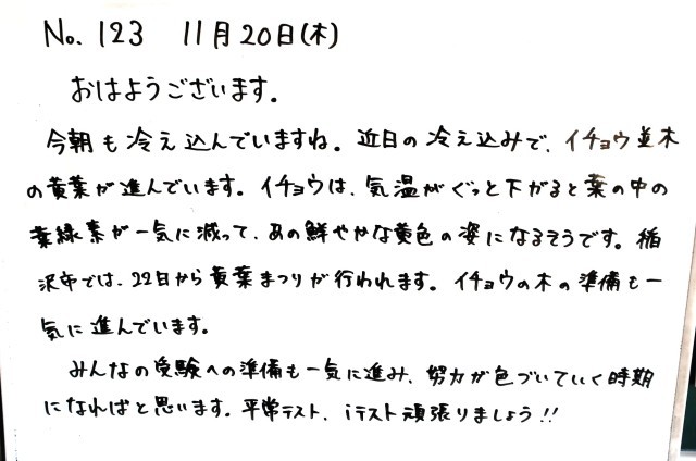 11月20日(木)3年生 先生からのメッセージ
