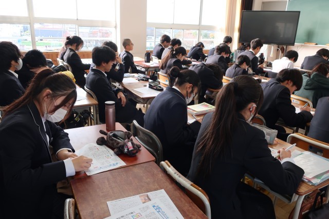 2年生は、朝の丹中タイムに新聞活用に取り組んでいました。活字に親しむことで得られることもたくさんあります。よい学びを続けていってください。多くの人に支えられて成長していることを意識して、見通しをもちながら前進していきましょう。