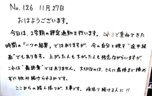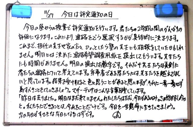 3年生の皆さんは、進路選択にむけて、真剣に取り組んでいます。先生方も、みなさんの力になるために一生懸命に準備をしてくださっています。心配なこと、不安なことがあれば、遠慮なく相談してくださいね。一緒にがんばって行きましょう。