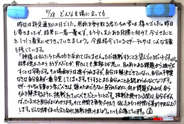 11月28日(金)3年生 先生からのメッセージ