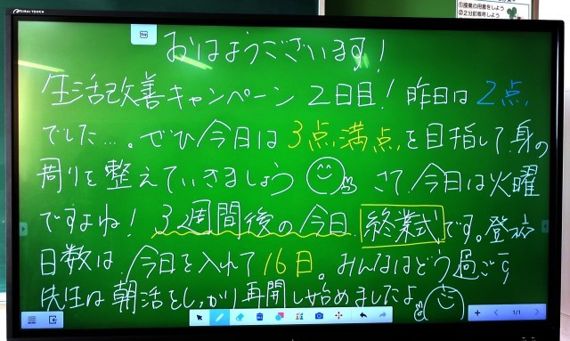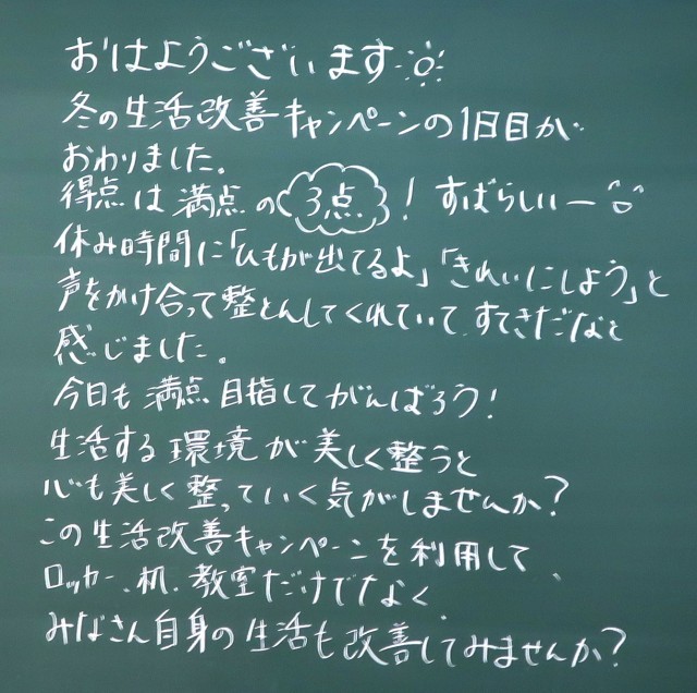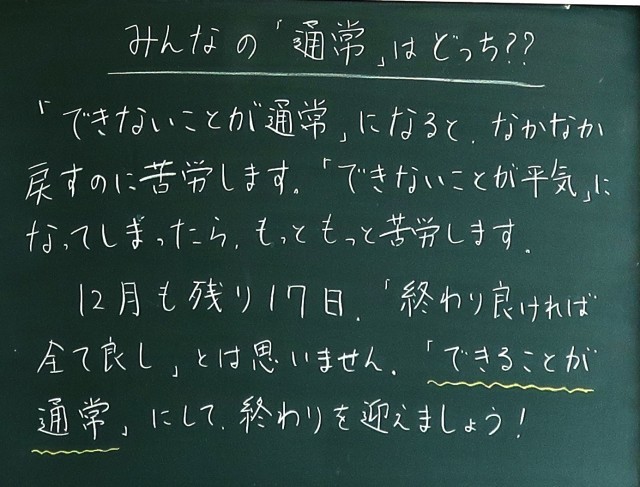 12月2日(火)1年生 先生からのメッセージ