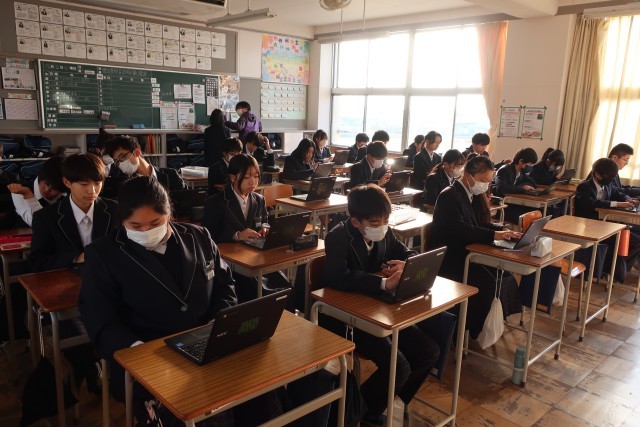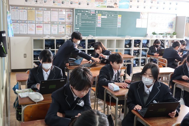 1年生は、朝の丹中タイムに地域調べの発表用スライドの作成を行っていました。友達と相談しながら、よりよい資料を作成することができるよう、一生懸命がんばっています。3学期の保護者会での発表を目指しています。ご期待ください。