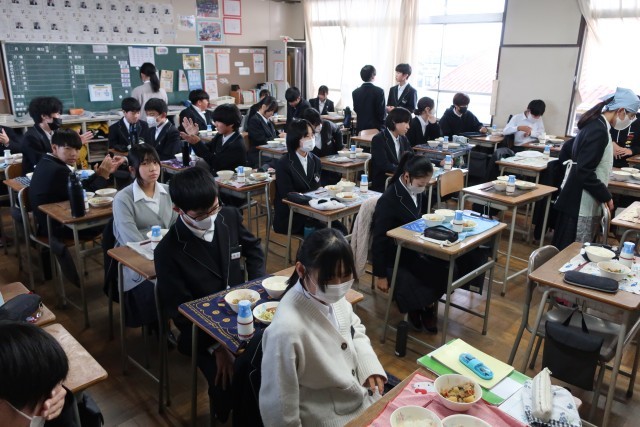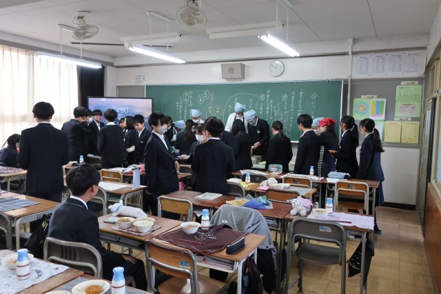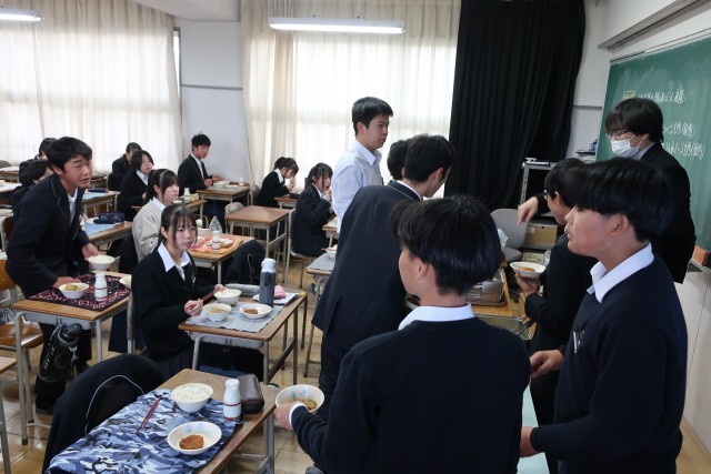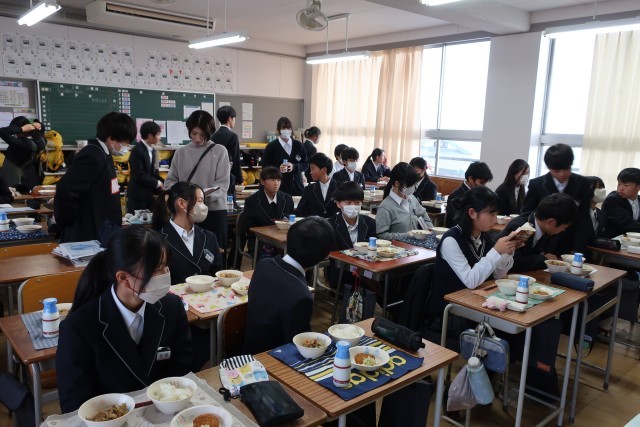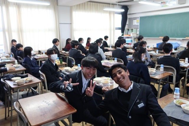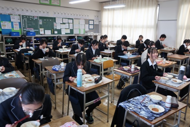 寒い日には、温かい給食がとてもうれしいですね。笑顔がいっぱいの給食の時間です。おいしい給食をありがとうございます。