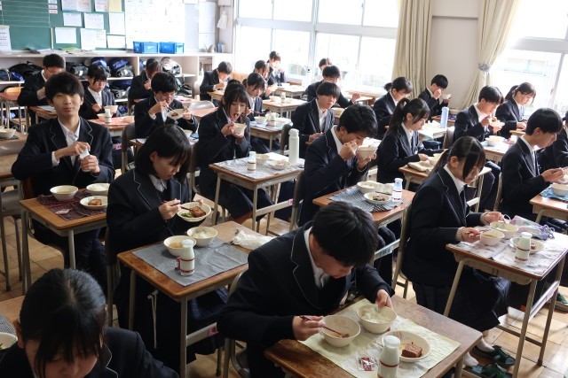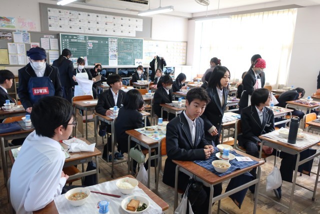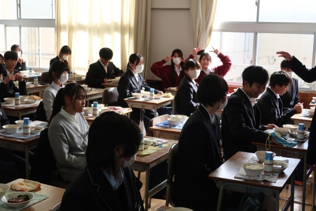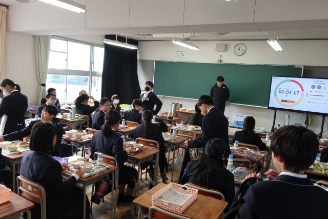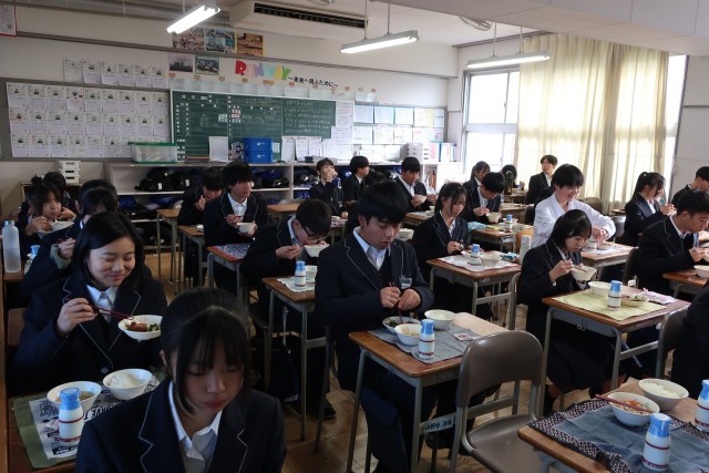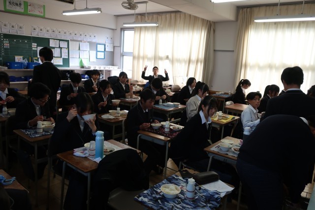 今日も寒い日になりました。温かい給食がとてもうれしいですね。みんな笑顔でおいしい給食をいただいています。