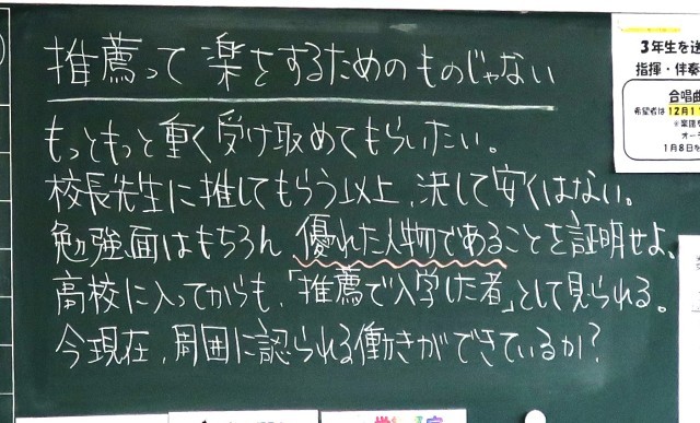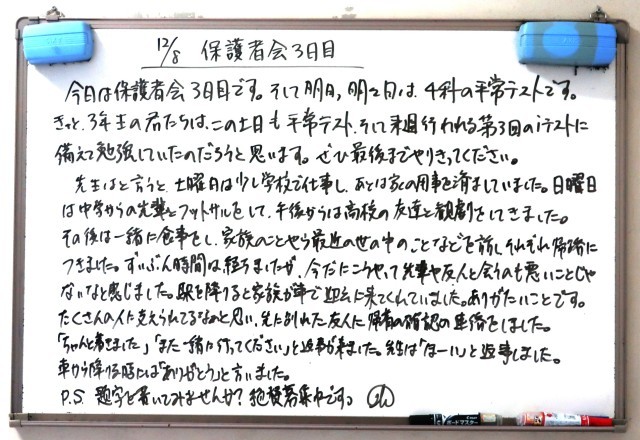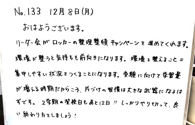 12月8日(月)3年生 先生からのメッセージ