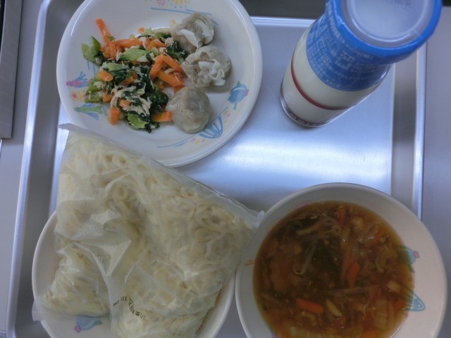 五目あんかけラーメンの「五目」とは、さまざまな種類の食材が入っているという意味で使われます。今日の五目あんかけラーメンにも、ぶた肉、なると、はくさい、にんじん、たけのこ、もやし、ねぎ、干ししいたけなど、たくさんの食材が入っています。