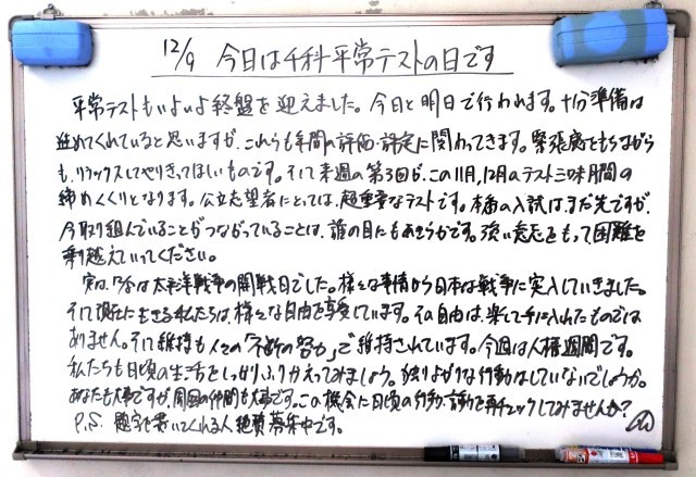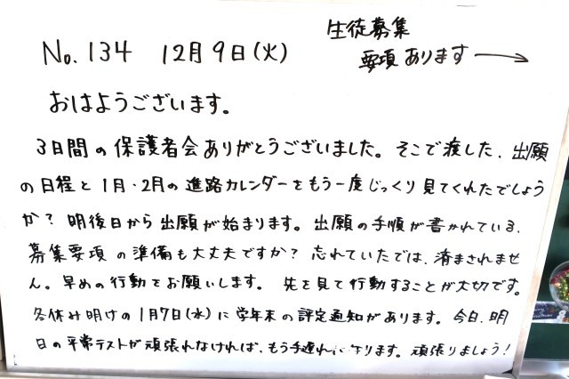 12月9日(火)3年生 先生からのメッセージ
