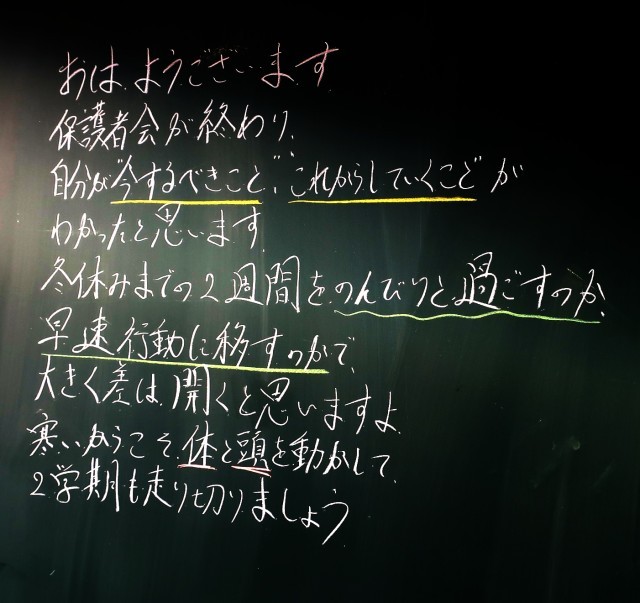人権週間に合わせて「ふわふわ言葉・チクチク言葉」を考える取り組みを行っています。どんな言葉が心をチクチクさせるか、どんな言葉が心を温かくさせるかを考えていくことで、みんなが過ごしやすいクラス、学年になっていきます。積極的にふわふわ言葉を使う雰囲気を作っていってくださいね。