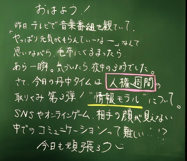 12月11日(木)1年生 先生からのメッセージ