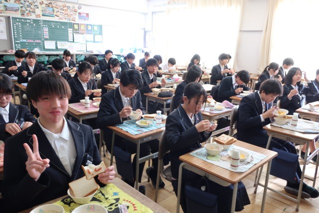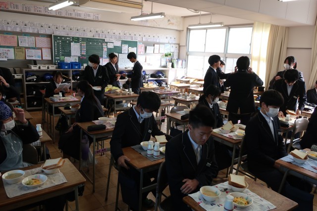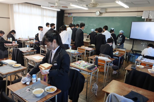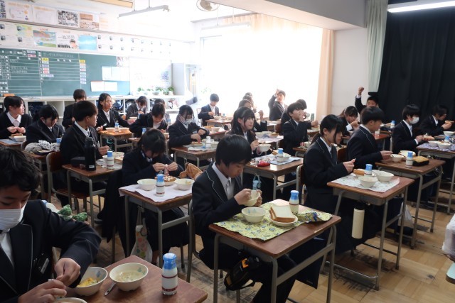 今日は、久しぶりのスライスパンの日でした。イチゴのジャムやキャベツとウインナーのソテーをはさんで、おいしくいただきました。冬野菜のシチューが温かくてとてもおいしかったです。子ども達の笑顔がいっぱいの給食の時間でした。