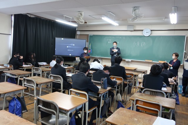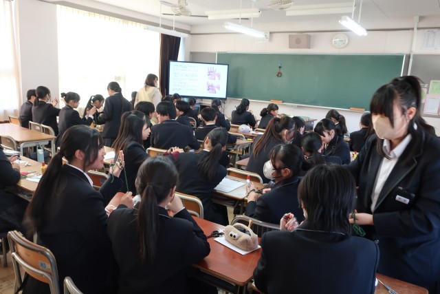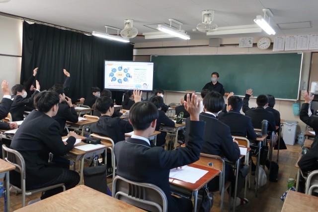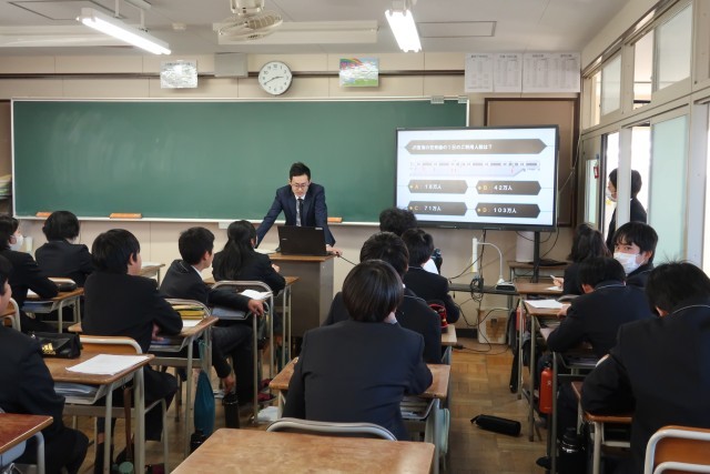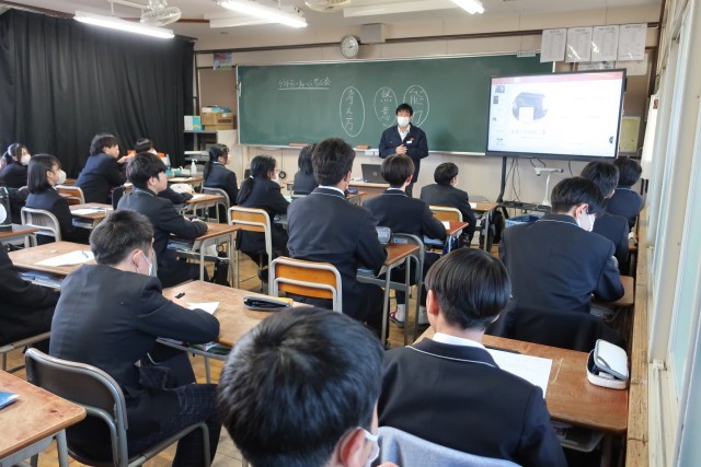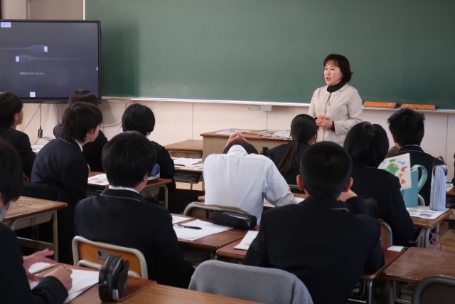今日の午後、ゲストティーチャーに学ぶ会を行いました。地元の企業や事業所で働いている方たちをお招きして、それぞれの仕事の魅力ややりがいなどについてお話をしていただきました。その仕事に就こうと思った理由や、そのために努力したこと、専門的な知識を得るための苦労など、とても分かりやすく教えていただきました。この経験を生かして、自分自身の将来のことについて考えていきたいと思います。講師の先生方、ありがとうございました。