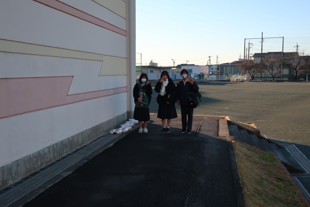 さわやなか青空が広がる朝でした。少し寒さを感じますが、例年に比べると温かい2学期の終わりです。今日も子ども達は元気に登校してきています。近隣ではインフルエンザの感染が広がっているようです。うがい・手洗い・換気を心がけ、健康な生活を送りましょう。