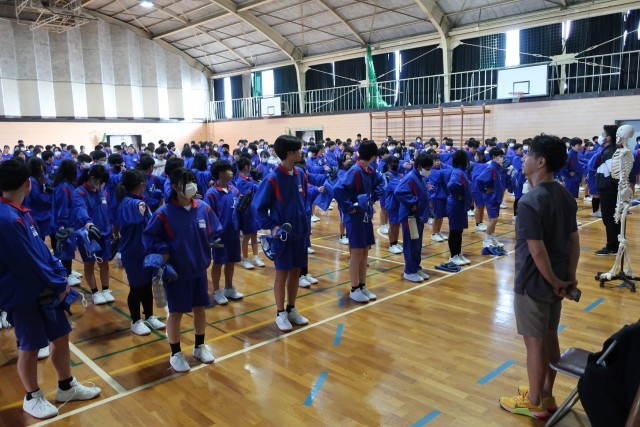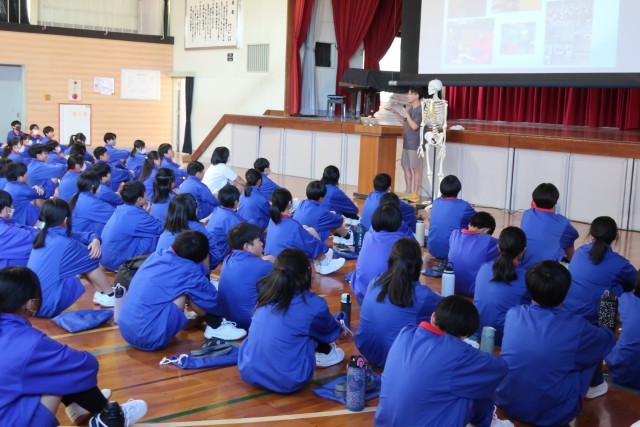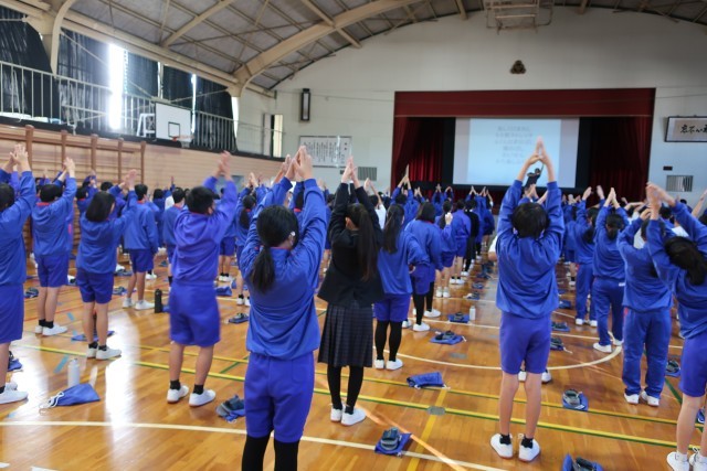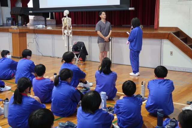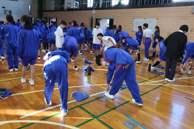 本日の午後、講師として「わかば接骨院」院長の鷲崎光輝先生をお招きして学校保健委員会を開催しました。怪我を予防するためのストレッチの方法や、健康な生活を送るために必要な姿勢の保ち方などについて、実演を踏まえながら分かりやすく楽しく教えていただきました。今日学んだことをしっかりと実践して、怪我のない生活、姿勢をよくして元気な生活を送っていきたいと思います。鷲崎先生、ありがとうございました。