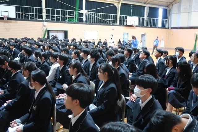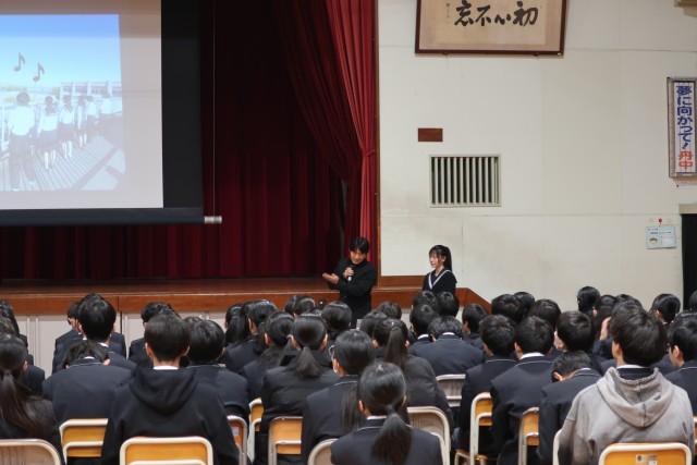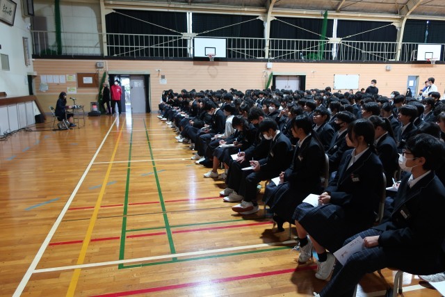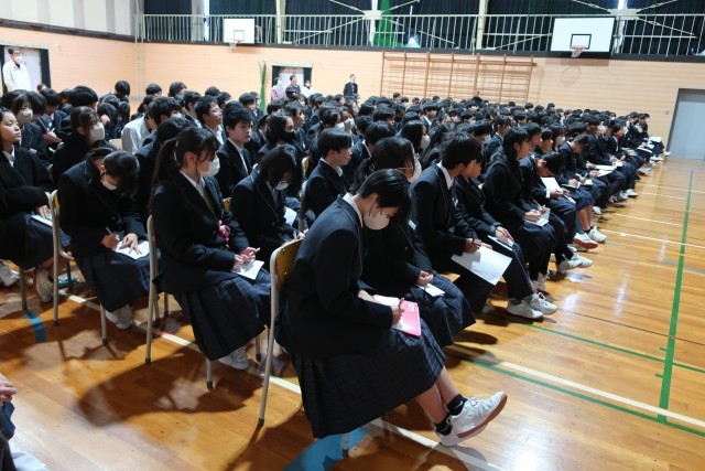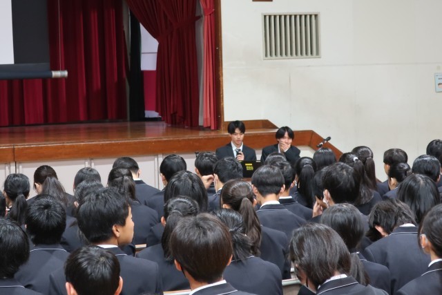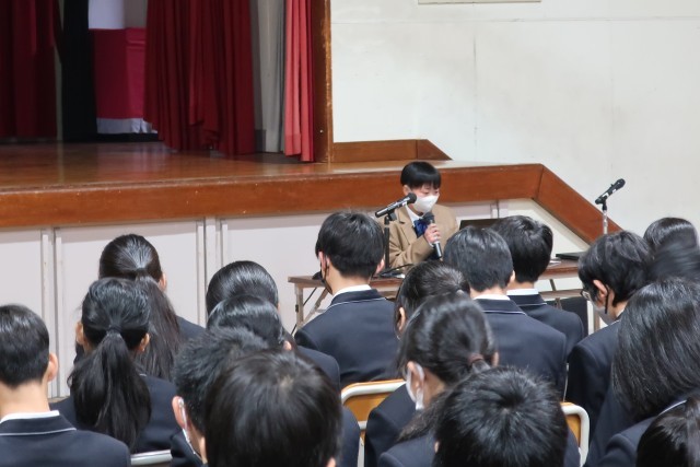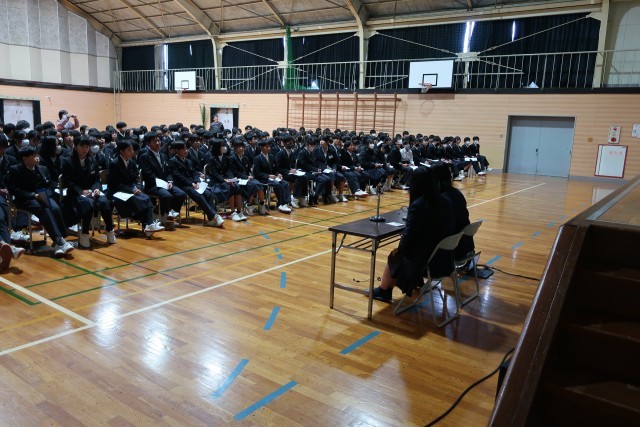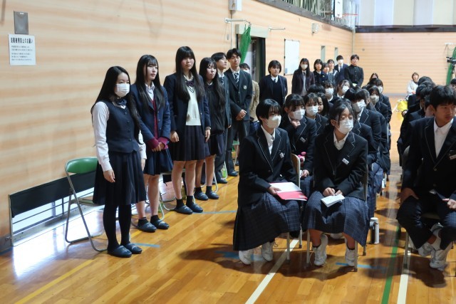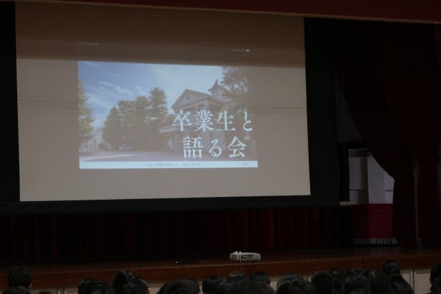 今日の午前中に、卒業生と語る会を行いました。本校の卒業生が多数お世話になる近隣の高校から、県外の高校まで、合わせて10校から先輩をお招きしました。先輩からは、今通っている高校の魅力や、中学生のころ気をつけて取り組んだポイントなど、体験談を交えながら分かりやすく話していただきました。参加した2年生の子ども達も興味をもってお話を聞き、しっかりメモを取っている姿がとても印象的でした。卒業生のみなさん、ありがとうございました。2年生のみなさん、今後の進路学習に役立てていきましょう。