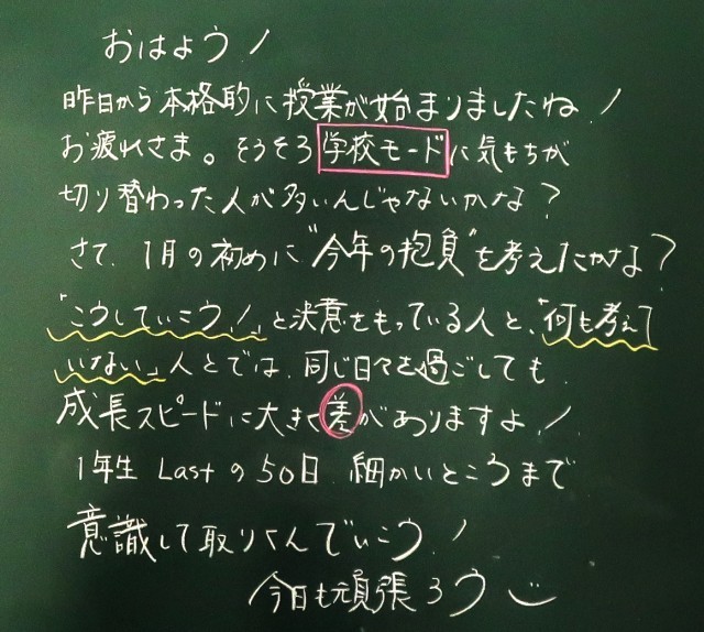 1月9日(金)1年生 先生からのメッセージ