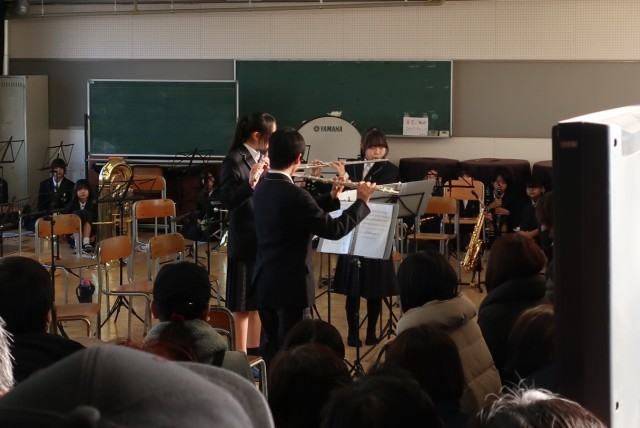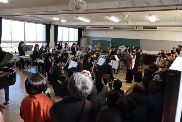 本日の午前に、吹奏楽部のウインターコンサートを行いました。新しいメンバーになって初めての発表の場だったので、みんな緊張していましたが、会場に集まってくださったみなさんの温かい声援のおかげで、しっかりと演奏することができました。地域のみなさま、保護者のみなさま、OBOGのみなさま、応援ありがとうございました。
