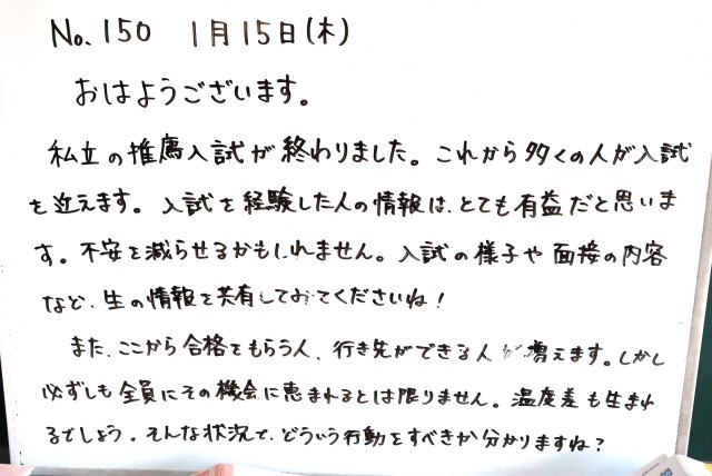 3年生は、今日から保護者会が始まります。1年生は、今日の午後「ゲストティーチャーに学ぶ会」があります。それぞれの学年で、その時々にがんばる内容な違いますが、今できることを力一杯取り組んでいきましょう。