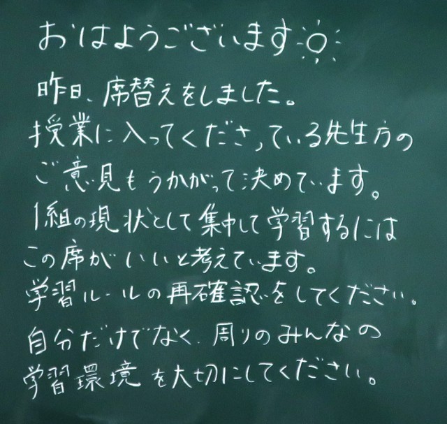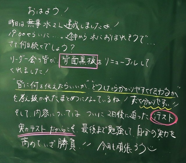 1年生のメッセージボードにも、3年生への応援メッセージを書いていただいていました。互いを思いやり、高めていく気持ちが、仲間を応援する気持ちにつながっていきます。これからも、日々の生活を充実させていきましょう。