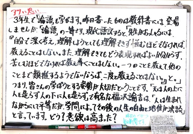 1月22日(木)2年生 先生からのメッセージ