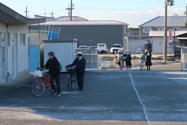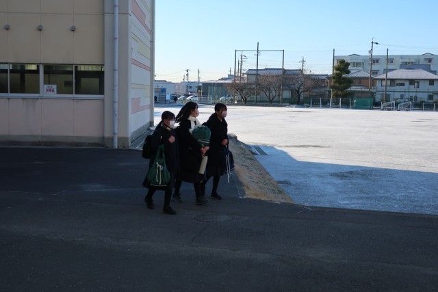 気温が低かったため、昨日降った霰(あられ)がグラウンドに残り、幻想的な雰囲気を感じる朝になりました。寒い中でしたが、子ども達は元気に登校してきています。今週は、期末テストがありますね。体調に気をつけてがんばりましょう。