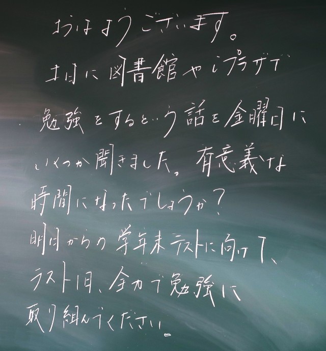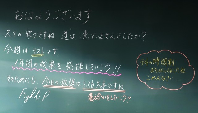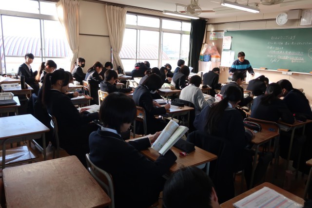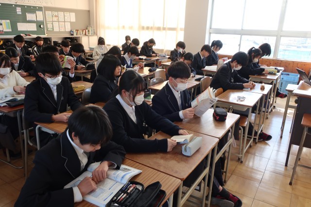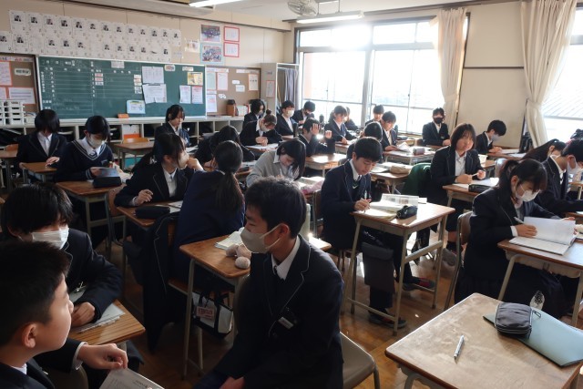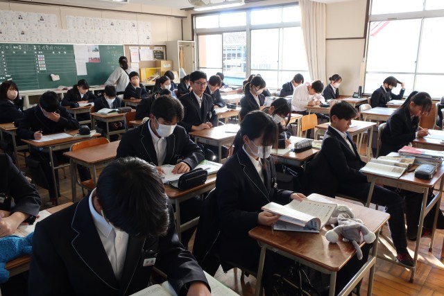 2年生も、落ち着いた雰囲気で1週間が始まりました。朝の読書のあと、学習の準備を速やかに行い、明日から始まる学年末テストに向けたの準備を行っていました。もうすぐ3年生になりますね。自らの力を高める努力を続けていきましょう。