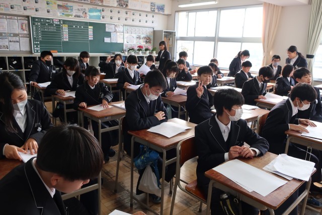1年生の教室でも、学年末テストの返却がされていました。ほっと一息だとは思います。でも、今回のテストは通過点であることを意識している人がたくさんいると聞きました。気持ちの切り替えをしながら、自分の力を高める努力をしていきましょう。