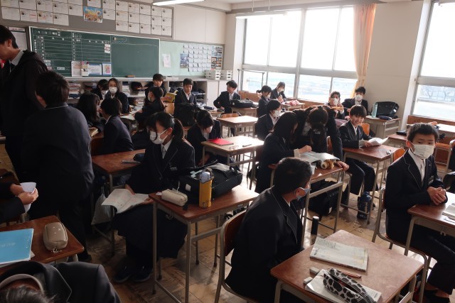 1年生は朝の丹中タイムに、屋内運動場で学年集会を行っていました。残り少ない1年生の時間を有効に使い、次のよいスタートにつなげていくための大切な時間になりました。引き続き、仲間と協力して学年の力を高めていきましょう。