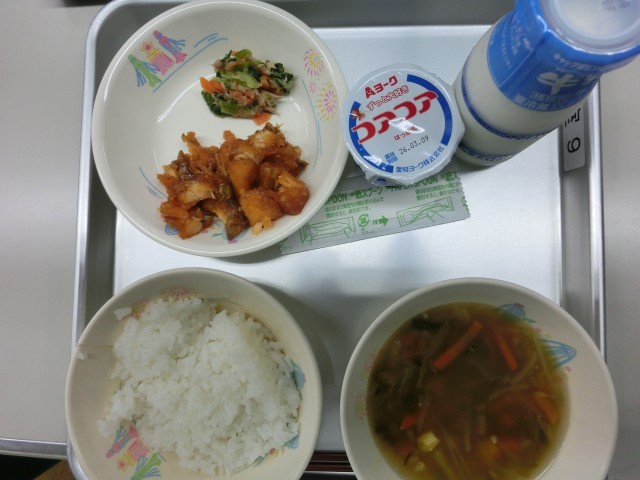はるさめは「じゃがいもやさつまいも、緑豆という豆」などのでんぷんを原料としてつくられます。半透明な糸のような見た目が、春に降る雨に似ていることから「春雨」という名前が付けられました。今日はとり肉、はくさい、にんじん、にら、もやし、とうもろこし、干ししいたけと一緒に中華味のスープでいただきます。