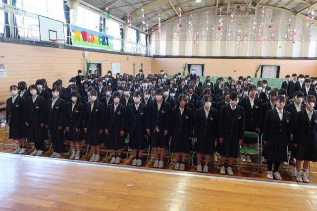 明日、卒業を迎える3年生のみなさんに、一宮市教育委員会とPTAから記念品が贈られました。その後、同窓会入会式が行われ、同窓会長さんから激励の言葉をいただきました。丹陽中学校でいただいたご縁を大切にし、仲間とともに丹陽町を盛り上げていきましょう。