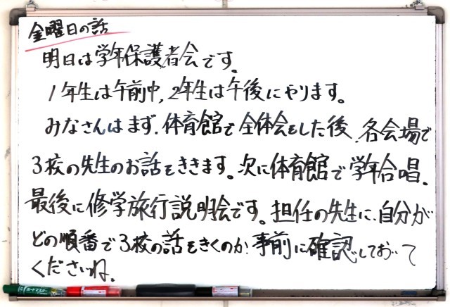 明日は学年保護者会と上級学校の先生のお話を聞く会がありますね。いよいよ最高学年としての動きが本格的に始まります。ひとつずつ丁寧な姿勢で取り組んでいきましょう。