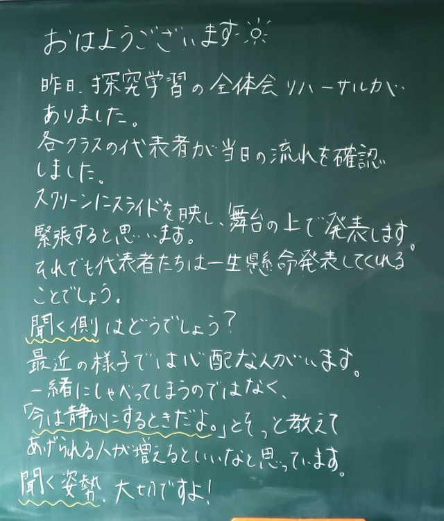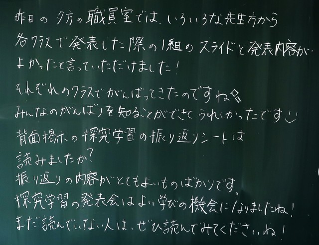 探究学習の発表会の準備が準備が進んでいます。仲間と相談しながら、よりよい発表内容になるために一生懸命がんばっています。