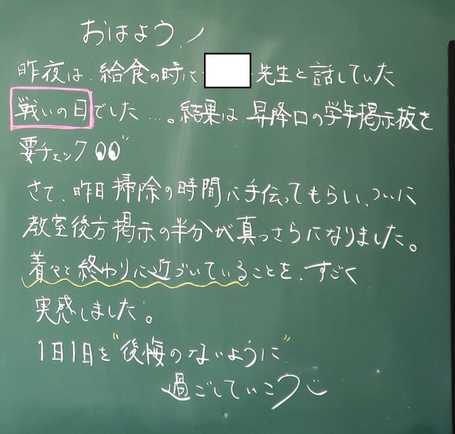 3月18日(水)1年生 先生からのメッセージ