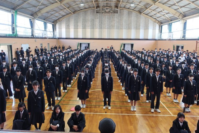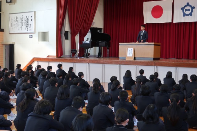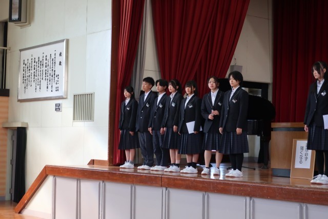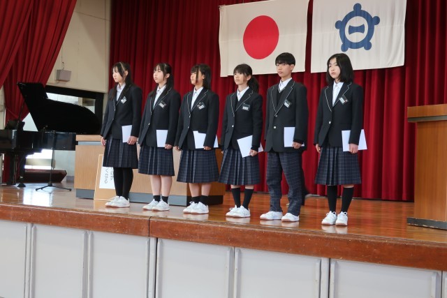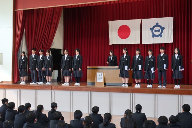 修了式では、校長先生から、物事の結果だけにとらわれることなく、努力する過程を大切にしてほしい。そんな気持ちを大切にしながら、新年度に向けた準備をしていきましょうというお話がありました。また、修了式のあとには、生徒会役員の引継ぎ式を行いました。2025年度後期生徒会役員のみなさん、お疲れさまでした。2026年度前期生徒会役員のみなさん、よろしくお願いします。