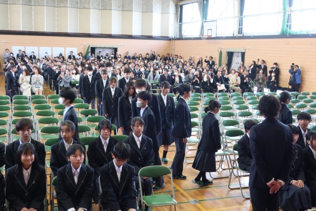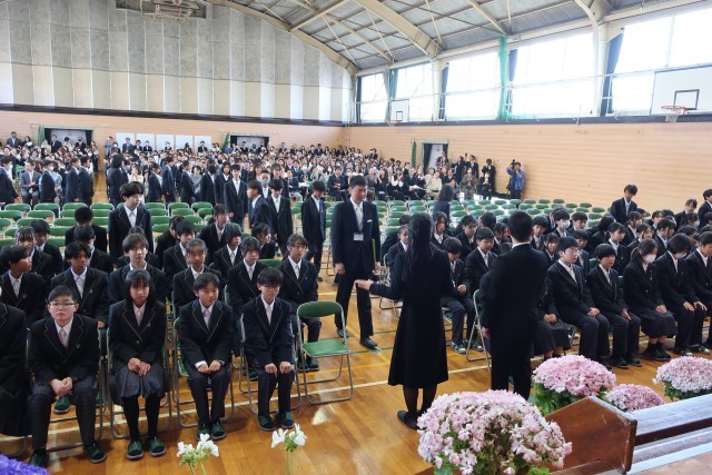 本日、多数の保護者の方のご臨席を賜り、入学式を行いました。新たに丹陽中学校の仲間に加わった288名の新入生のみなさん、ご入学おめでとうございます。みなさんの入学を、先輩たちも先生方も楽しみに待っていました。丹中生全員が協力して、よりよい学校、学年、学級を作っていきましょう。みなさん、よろしくお願いします。